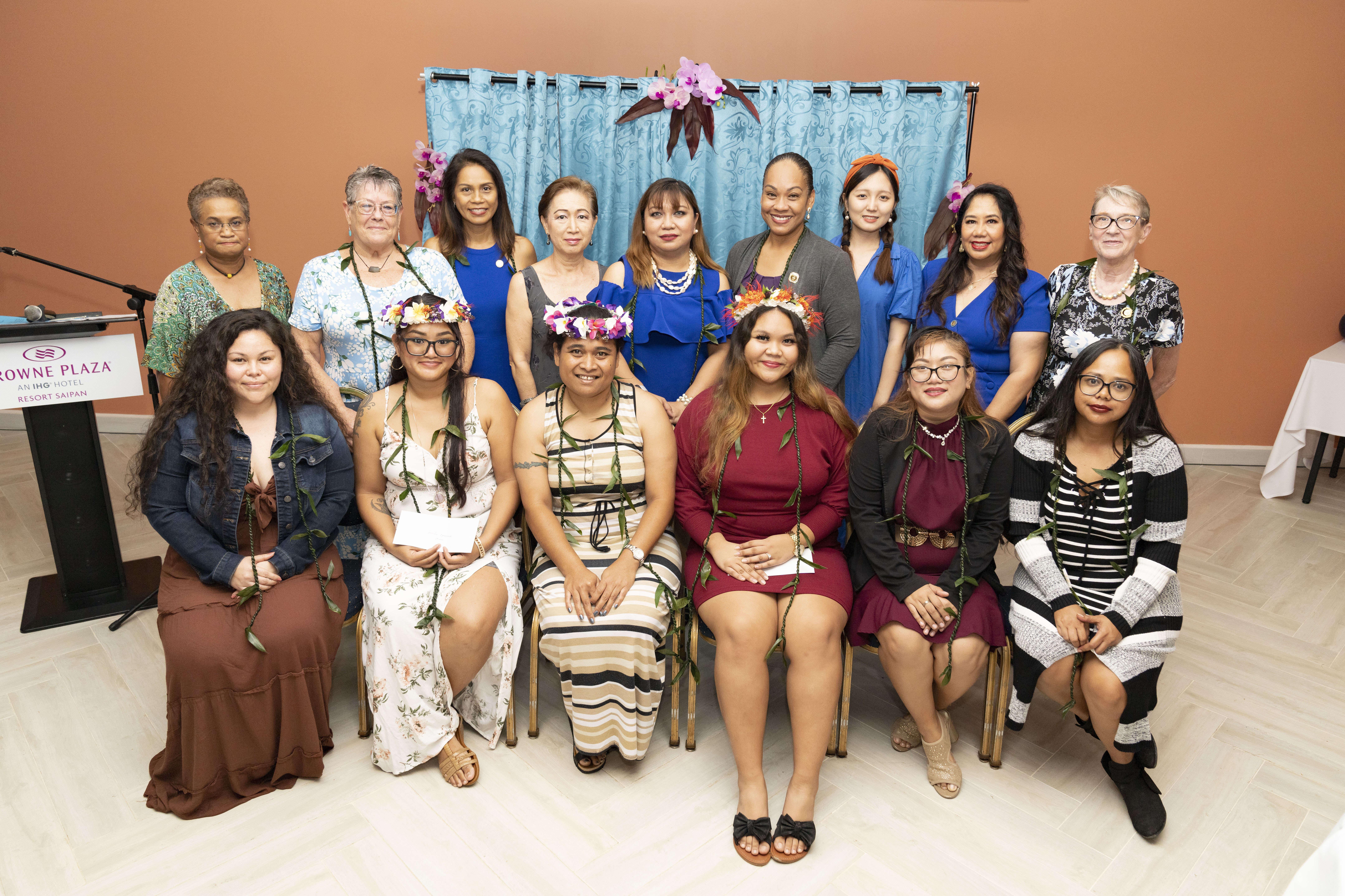 Five Northern Marianas College students were awarded “Live Your Dream” scholarships by the Soroptimist International Northern Mariana Islands Chapter on Saturday, Nov. 19, 2022. A recipient must be the head of household or the main financial support of the household, who is also a full-time undergraduate student at either a college, university, or trade school, and needs financial assistance. The awardees are first place Jennifer Benavente (who received $3,000), second place Angellyn Nicolas ($1,000), third place Mollie Atinisom ($1,000), and Maritoni Duarte and Kelly Sablan who tied for fourth place and received $1,000 each. The top three also received $500 each from the Rotary Club of Saipan. In photo with the winners are Soroptimist members Marilyn Maron, Maureen Sebangiol, Merle Byrd, Suzi Perez, Jessy Loomis, Jessica Castro, Aeja Park, Joann Aquino, Pam Brown, and Leah Murphy, the first-ever recipient of the “Live Your Dream” award. Not in the photo is NMI Family Court Division Manager Crystal Cabrera Pangelinan, the keynote speaker for the event.
