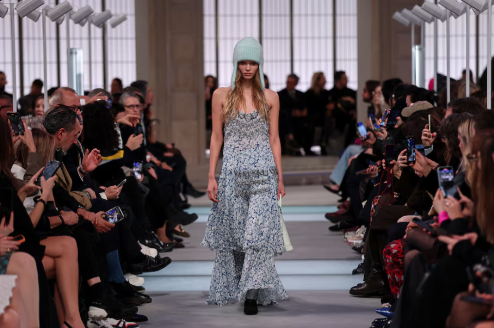 A model presents a creation by designer Nicolas Ghesquiere as part of his Fall/Winter 2025-2026 Women’s ready-to-wear collection show for fashion house Louis Vuitton during Paris Fashion Week in Paris, France, March 10, 2025.