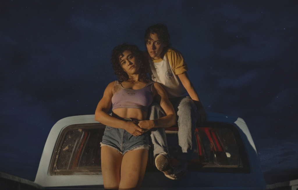 Katy O’Brian, left, and Kristen Stewart in “Love Lies Bleeding.”