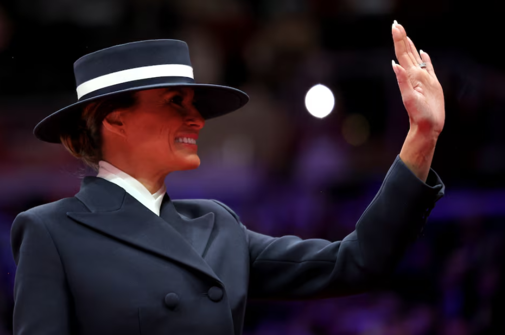 First lady Melania Trump gestures during the inaugural parade inside Capital One Arena on the inauguration day of President Donald Trump’s second presidential term, in Washington, D.C. Jan. 20, 2025.
