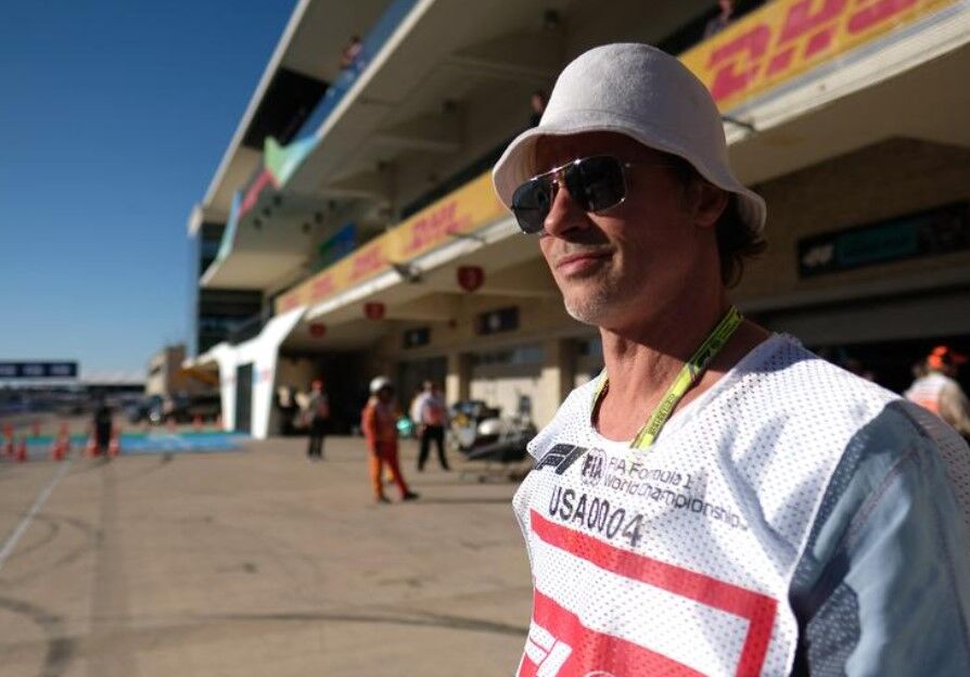 Brad Pitt is seen during practice at Formula One F1, United States Grand Prix, Circuit of the Americas in Austin, Texas on Oct. 21, 2022.