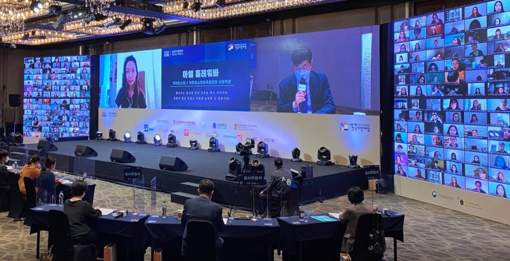 Participants from overseas take part in a Korean speech contest held by Sejong Institute Foundation in Seoul, South Korea, Oct. 8, 2021.