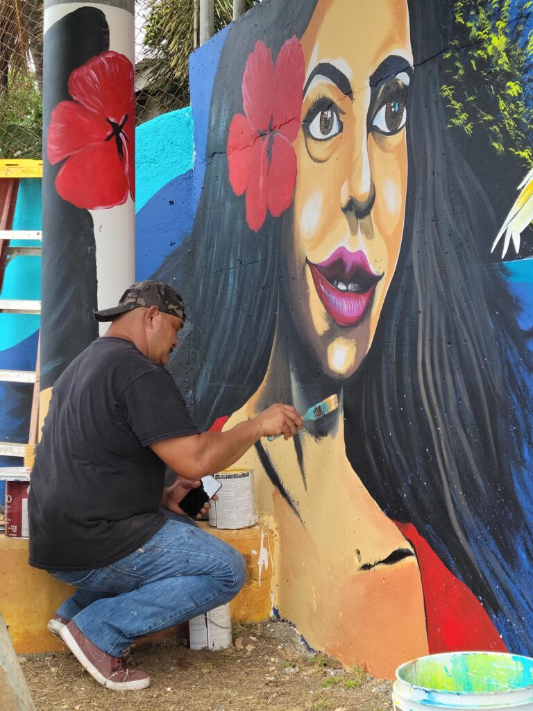 Local artist Luis Ogo paints a new mural in San Vicente.