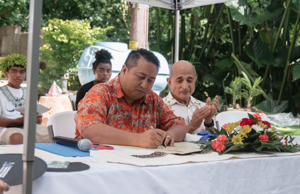 On Friday morning, Gov. Ralph DLG Torres, Northern Marianas Humanities Council Executive Director Leo Pangelinan, members of the Northern Marianas Humanities Council, Siñot Manny F. Borja, Master Navigator Cecilio Raiukiulipiy, and other members of the community October as CNMI Humanities Month at the Santa Lourdes Shrine. “I call upon the people of the Marianas to celebrate and promote the humanities and encourage greater participation among our diverse communities in taking action for the humanities in their respective islands and villages,” the governor said. “The humanities allow us to delve into the concept of the human experience and teach us how to be critical thinkers and more informed citizens. Let us continue to support our Northern Marianas Humanities Council as a catalyst for discussions about who we are as a people.”