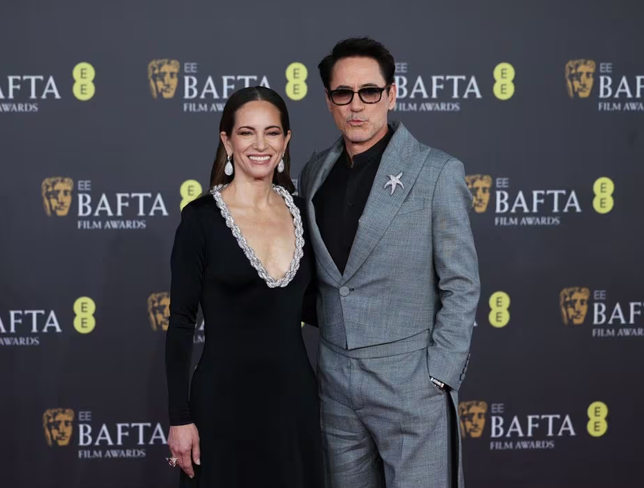Robert Downey Jr. and his wife Susan arrive at the 2024 British Academy of Film and Television Awards at the Royal Festival Hall in the Southbank Centre, London, Britain, Feb. 18, 2024.