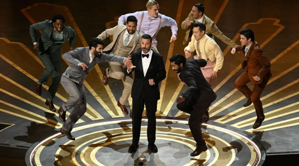 LOS ANGELES (Reuters) — Comedian Jimmy Kimmel, hosting the Oscars for a third time, led a back-to-basics show on Sunday that celebrated a moviegoing rebound from the Covid-19 pandemic while avoiding — and making light of — the kind of ugly outburst that marred the 2022 telecast.