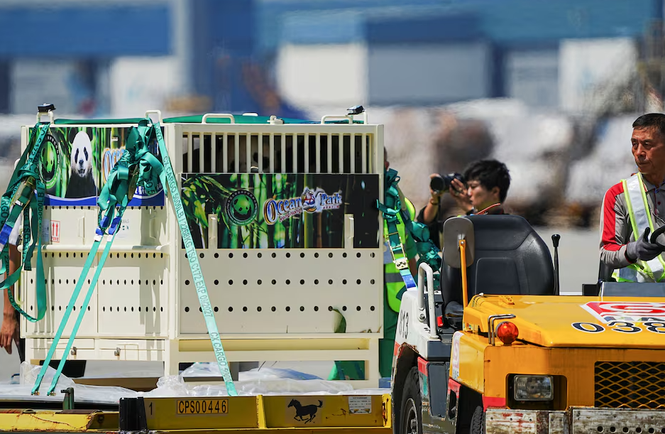 An An, a giant panda, arrives at the Hong Kong International Airport as a gift from China ahead of China’s 75th National Day, in Hong Kong, Sept. 26, 2024.