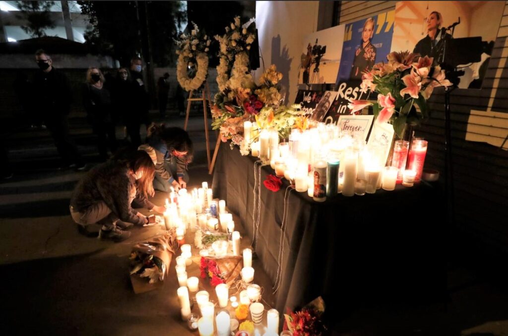 People attend a vigil in Burbank, California on Oct. 24, 2021 for cinematographer Halyna Hutchins who was fatally shot on the film set of “Rust.”