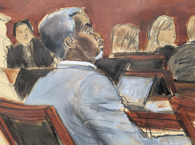 Sean Diddy Combs listens during opening statements on the first day of trial in Manhattan federal court, Monday, May 12, 2025, in New York.