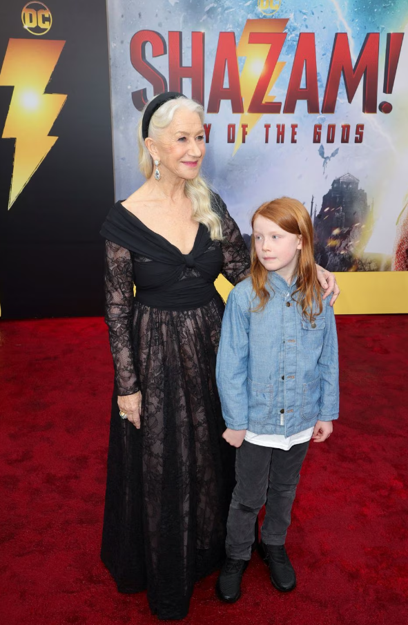 Helen Mirren and Basil Mirren attend the world premiere of “Shazam! Fury of the Gods” at Regency Village Theatre in Los Angeles, March 14, 2023.