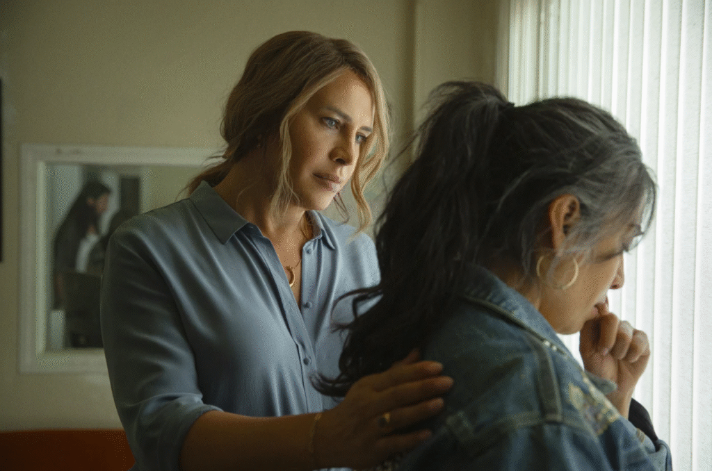 Karla Sofia Gascón, left, and Adriana Paz in a scene from “Emilia Pérez.”