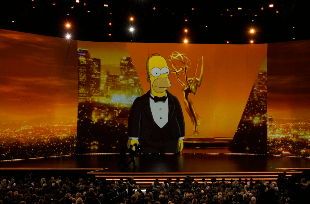 An image of the character “Homer Simpson” is shown on stage at the 71st Primetime Emmy Awards in Los Angeles, California, Sept. 22, 2019.