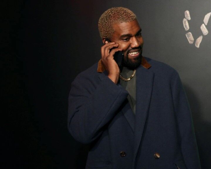 Rapper Kanye West talks on the phone before attending the Versace presentation in New York, Dec. 2, 2018.
