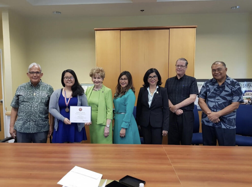 “I had many mentors and a strong support system at the University of Guam, but there were those who truly pushed me and inspired me throughout my academic journey and even beyond that during my professional career. Dr. Ansito Walter, Dr. Ron McNinch, Professor Ron Aguon, Dr. Annette Taijeron Santos, and UOG President Anita Borja Enriquez have all shaped my experiences at the University in such an intentional and meaningful way,” she said.