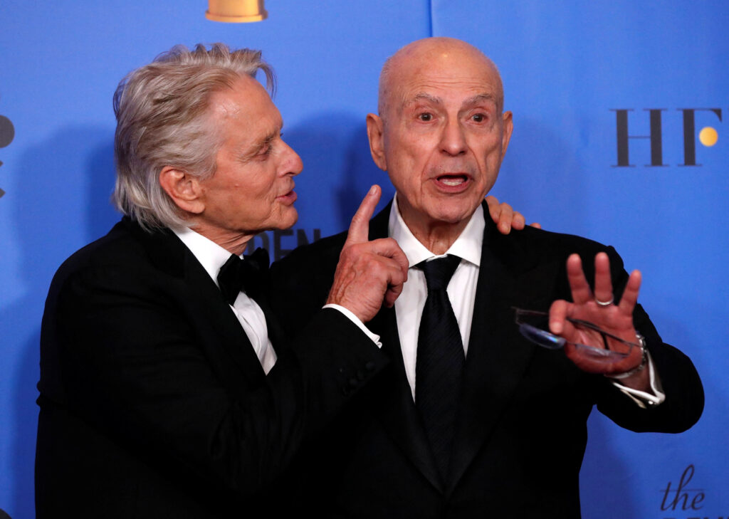 FILE PHOTO: 76th Golden Globe Awards – Photo Room – Beverly Hills, California, U.S., January 6, 2019 – Michael Douglas (L) and Alan Arkin pose backstage. REUTERS/Mario Anzuoni/File Photo
