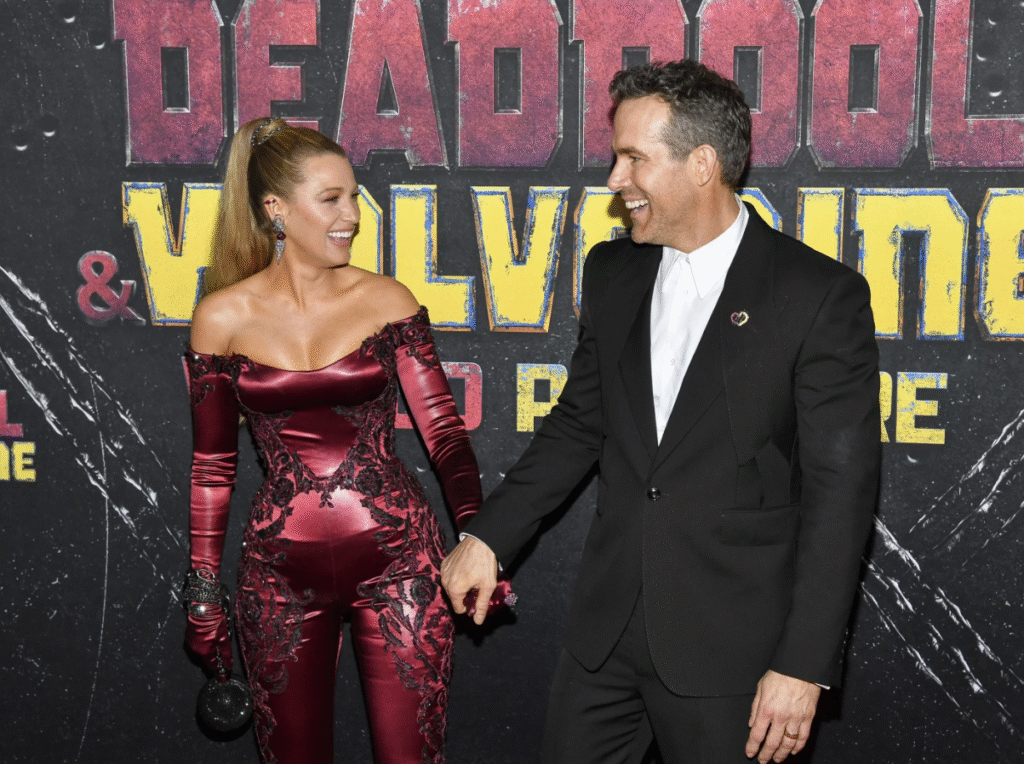 Blake Lively, left, and husband Ryan Reynolds attend the world premiere of Marvel Studios’ “Deadpool & Wolverine” at the David H. Koch Theater on July 22, 2024 in New York.