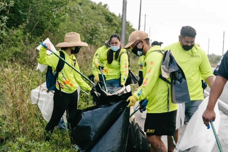 Guam Green Growth Conservation Corps members pick up trash along a highway in this contributed photo.
