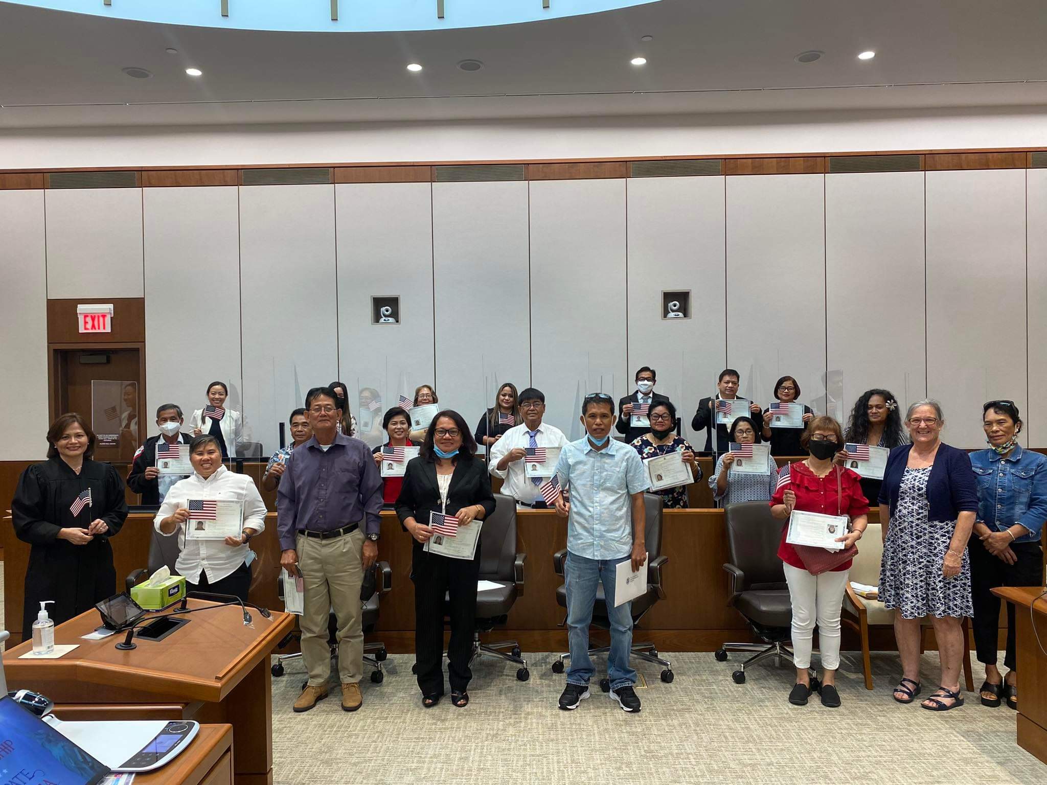Also sworn in as U.S. citizens in the morning session were Ricardo Jimenez Amog, Noime Pangelinan Babauta, Beverly Casaclang Balakrishnan, Gayline Patricia Blau, Virgilio Salum Cucal, Zenaida Mongado Cuerdo, Marivic Ballesteros Fernandez, Windy Ann Ventura Fernandez, Alberto Olea Lucido, Maria Concepcion Capangpangan Mettao, Reynaldo Gonza Moreno, Edgardp Trajano Oliva, Josefino Zamoranos Tadifa Jr., Rafaela Baruela Tadifa, and Adelaida Espiritu Toribio.