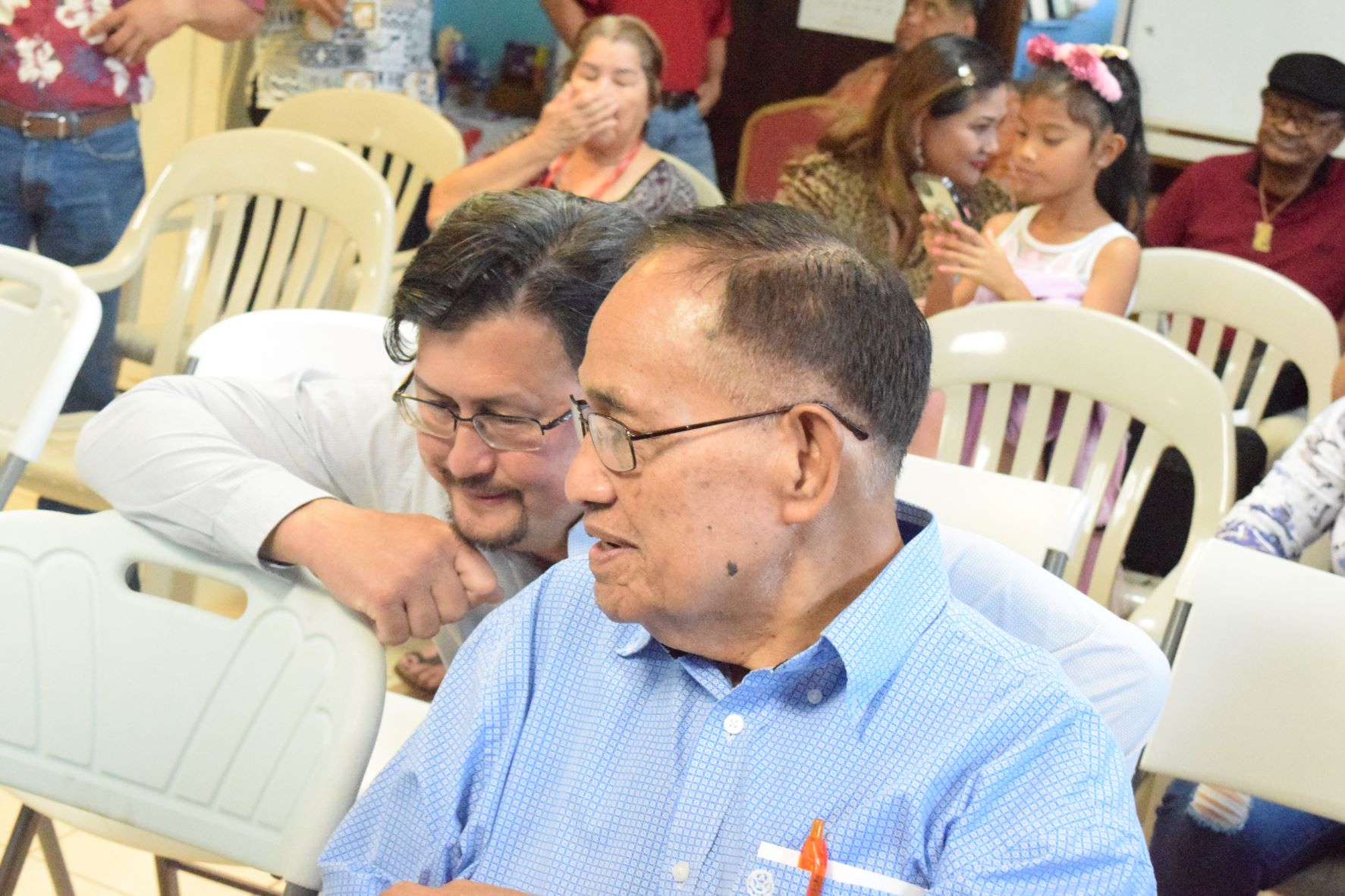 Rep. Edwin Propst listens to former Gov. Benigno R. Fitial during a press conference conducted by Gov.-elect Arnold I. Palacios and Lt. Gov-elect David M. Apatang with Reps. Tina Sablan Leila Staffler at the AD headquarters in Garapan on Monday.