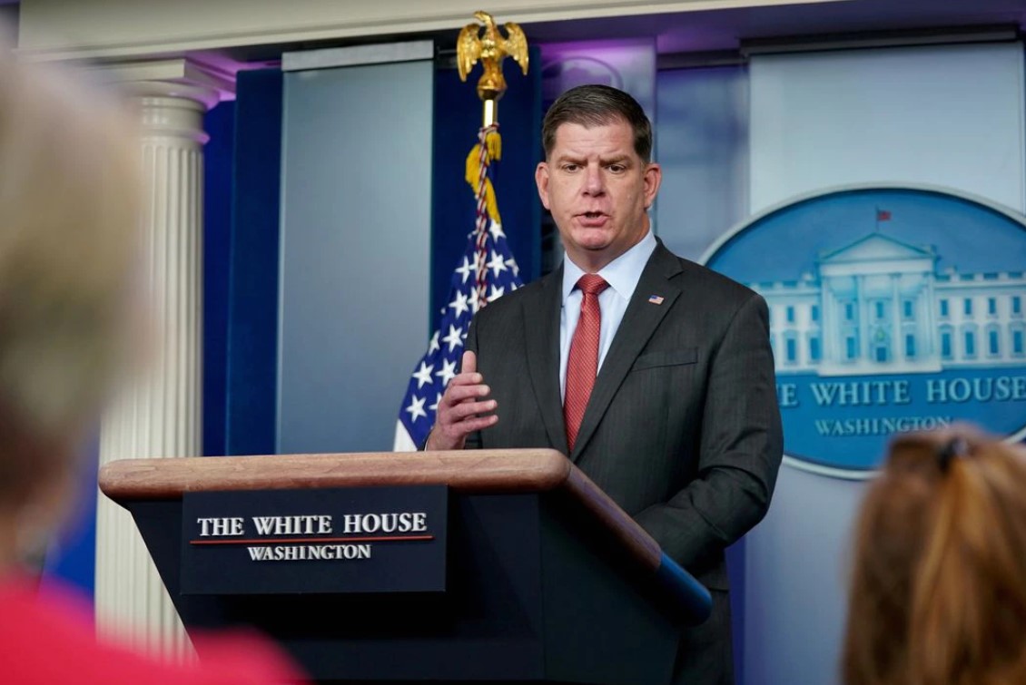 Secretary of Labor Marty Walsh speaks during a news conference at the White House in Washington, D.C. on April 2, 2021.