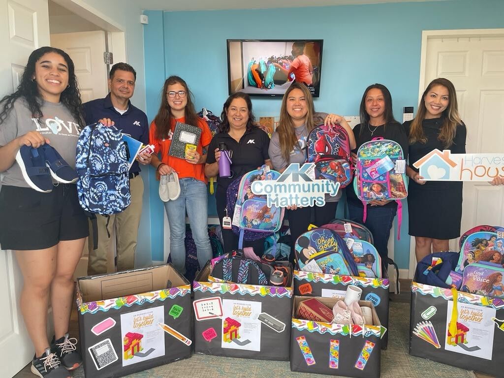 Atkins Kroll donated backpacks, tennis shoes, and water bottles to Harvest House on Thursday, Aug. 3, 2023, to support Guam’s foster children. Donations were collected throughout the summer and is part of AK’s Community Matters program, which aims to donate to non-profit organizations that make our community a better place to live, work, play, and visit. Pictured from left are Ruth Urraca, Harvest House summer intern; John Perez, AK regional health safety environment manager; Valerie Busenitz, Harvest House summer intern; Alicia Roberto, AK parts manager; Joanna Javellana, Harvest House resource center coordinator; Pamela Santos, AK facilities supervisor; and Trina Cruz, AK marketing and communications director.