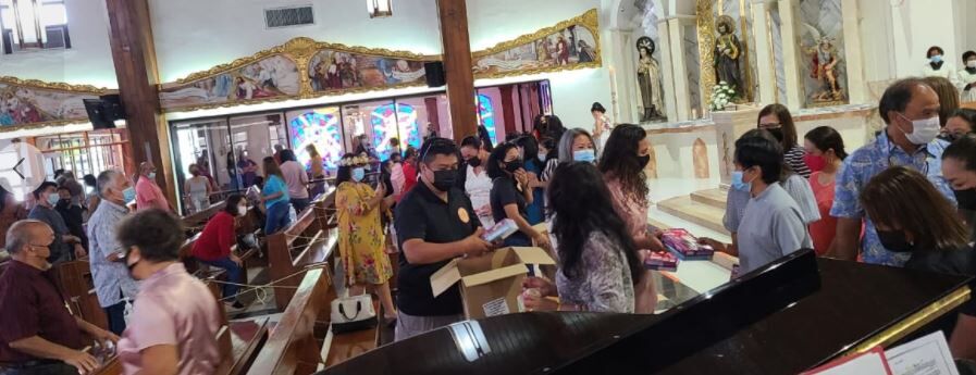 Hundreds of boxes of chocolates were given to mothers after the Masses.