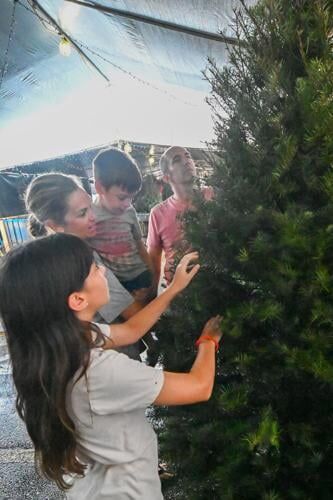 The Roedema family, from Barrigada, try and decide which fresh tree to buy at the Home Depot Christmas tree lot on Sunday, Nov. 19, 2023, in Tamuning.