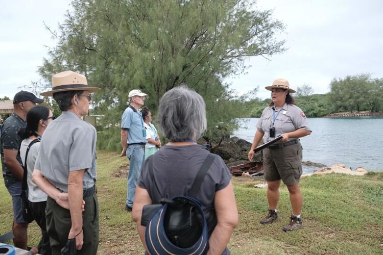 The clipper landing was the first stop on the tour, with park guide Kina Lewis detailing the history of how Apra Harbor once served as the landing strip for seaplane arrivals on Guam, including the first arrival of a Pan American clipper in 1935, an incredible feat at the time.