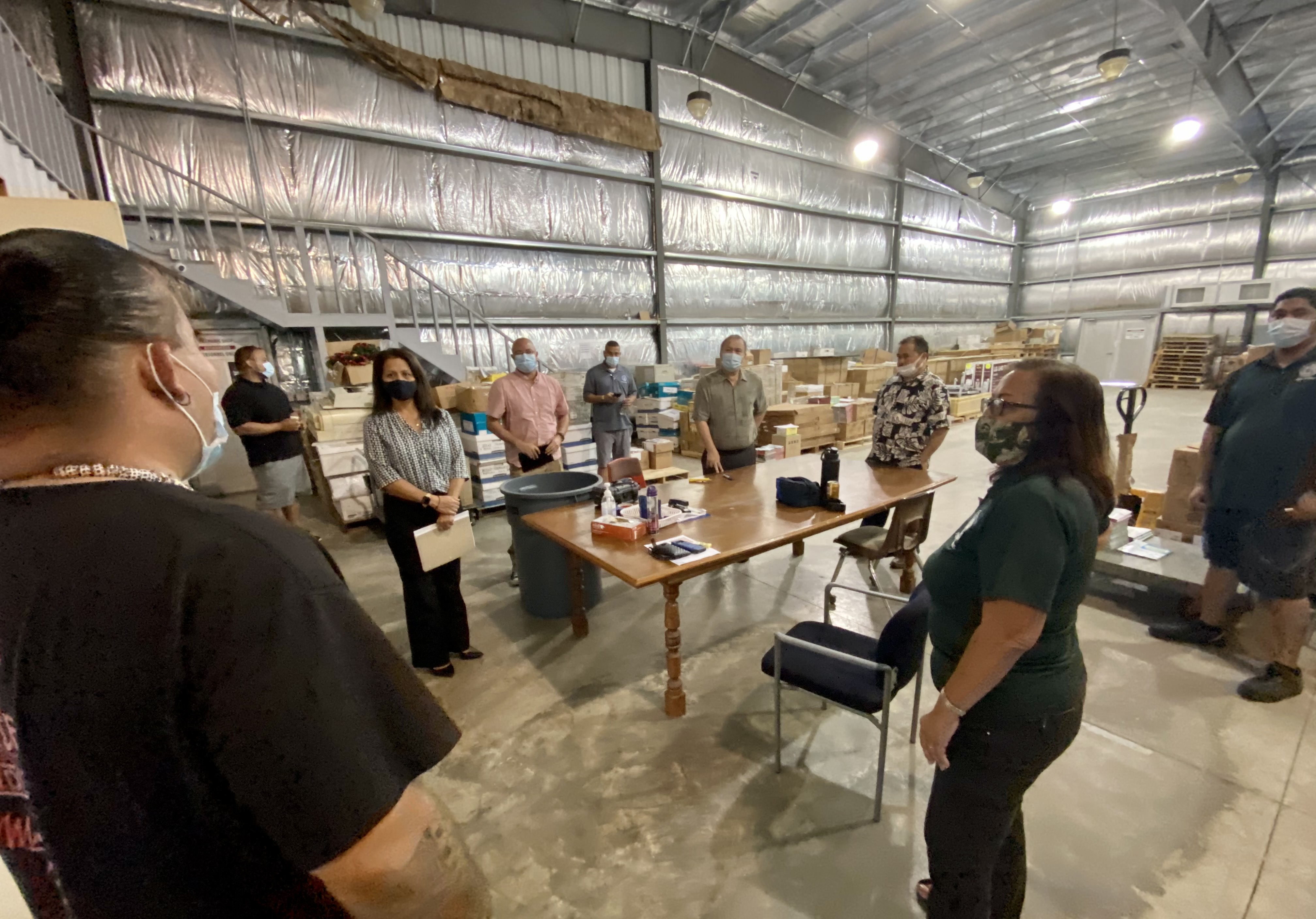 Board of Education Chairman Andrew L. Orsini, BOE members Gregory Borja and Maisie B. Tenorio learn how the Public School System’s procurement and supply system works during a tour of the Lower Base warehouse. Also in photo are the PSS Procurement and Supply team members led by Lillian Gumba and Education Commissioner Dr. Alfred B. Ada.