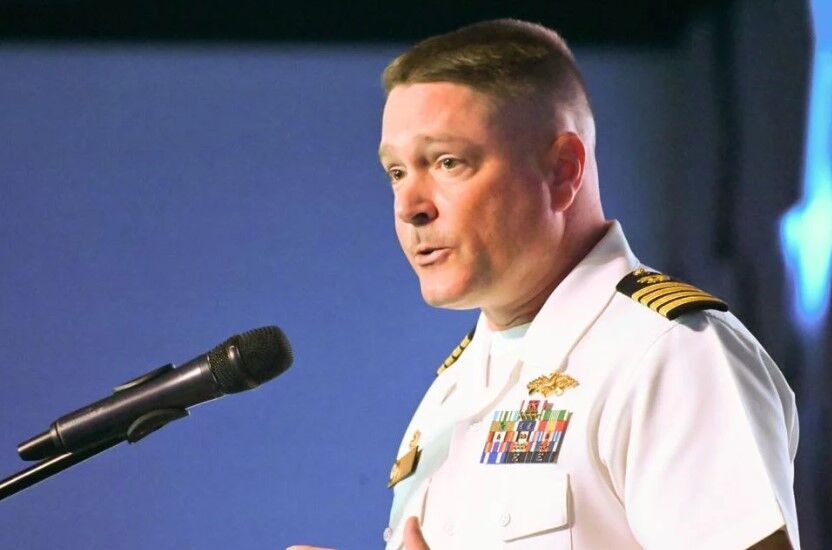 Capt. Robert Stiles speaks during a panel discussion on “Military Construction Outlook for Guam, the CNMI and Micronesia” at The Guam Industry Forum Monday, Nov. 14, 2022, at the Dusit Thani Guam Resort in Tumon.