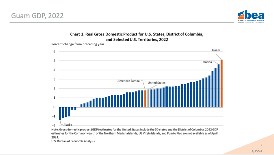 Governor Leon Guerrero stated, “GDP is the gold standard for measuring economic growth, especially when adjusted for Guam’s inflation rate, which was notably high in 2022. We are proud of our recovery and the hard work it took to get here, but we know we have so much farther to go for our people.”