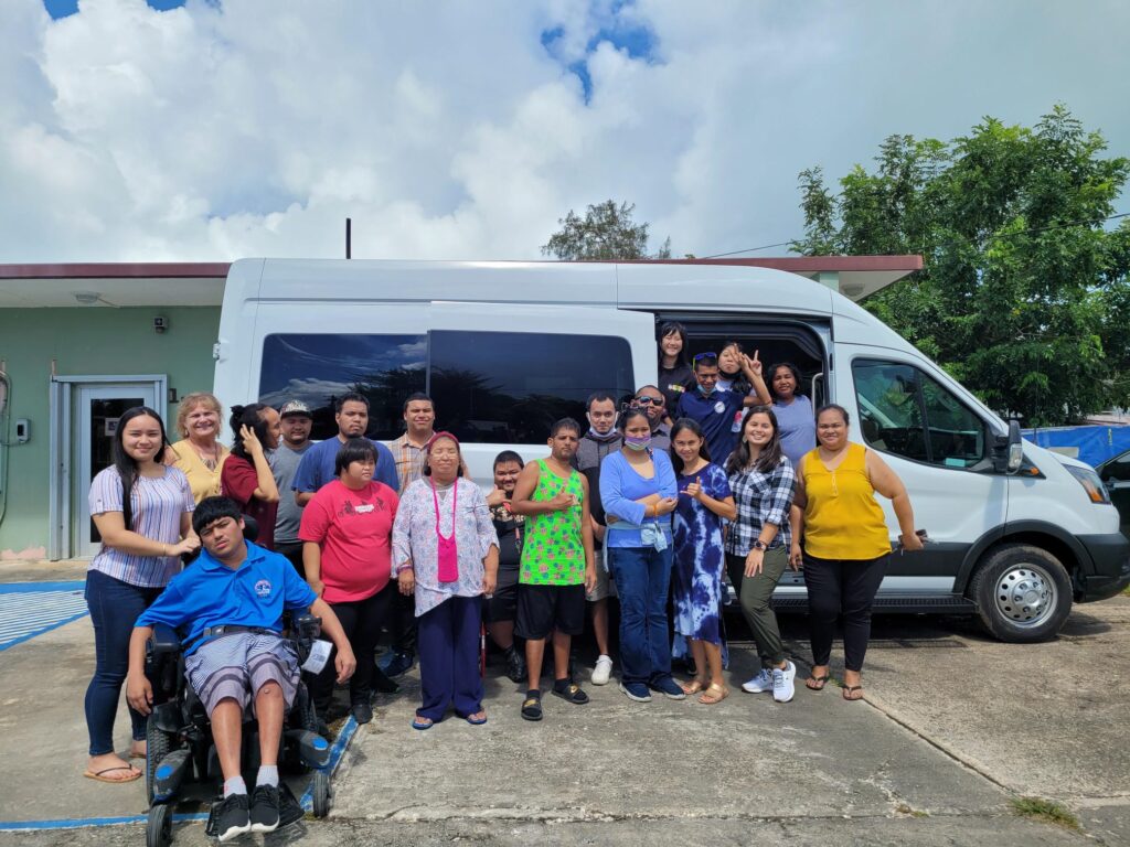 Center for Living Independently-CNMI Executive Director Susan Satur with staffers Matilde Selepeo, Zack Peter, Devonne Sablan and Tiana Pellegrino pose beside a newly purchased van. Also in photo are some of CLI’s consumers.