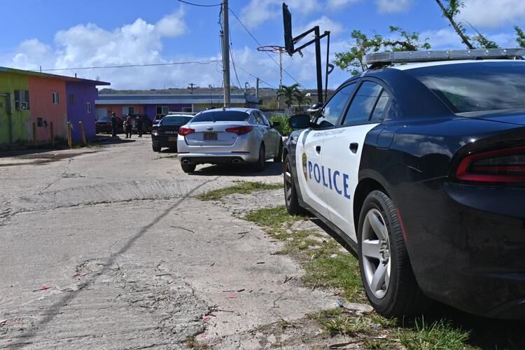 Police investigators on Wednesday June 14, 2023, speak to the parents of a child killed after a hit-and-run in the Family Apartments parking lot in Tamuning. The incident occurred early Tuesday evening.