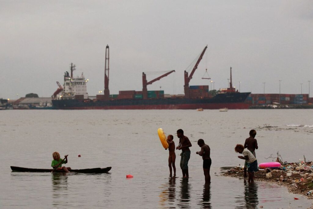 Children fish at a beach in central Honiara, the capital of the Solomon Islands, on Sept. 14, 2012.