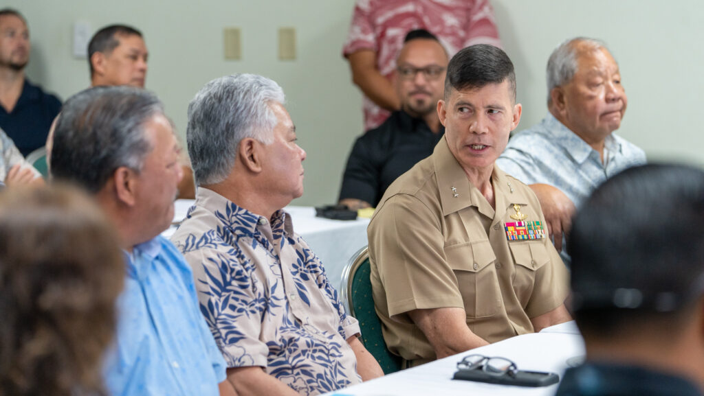 Last week, Maj. Gen. Mark A. Hashimoto of the U.S. Marine Forces Pacific, together with other senior military officials, met with Gov. Arnold I. Palacios, Lt. Gov. David M. Apatang, Tinian Mayor Edwin P. Aldan, Sen. Jude U. Hofschneider, and other CNMI officials to provide an initial update on where the Marines are in the planning process for adjustments to the CJMT or CNMI Joint Military Training proposal. On Thursday, MARFORPAC met with agency and government leadership, including Tinian Mayor Edwin Aldan, and local experts who will collaborate with the U.S. Department of Defense during the CJMT environmental planning process in the next year and beyond. On Friday, Maj. Gen. Hashimoto led the CNMI Stakeholders’ Meeting with Governor Palacios, Lt. Governor Apatang, and other local leaders, including Tinian Mayor Aldan, regarding updates on DoD-funded projects and initiatives that have been underway for the last few years such as road paving in Tinian, the Tinian Harbor improvements, community projects and military training in the CNMI.