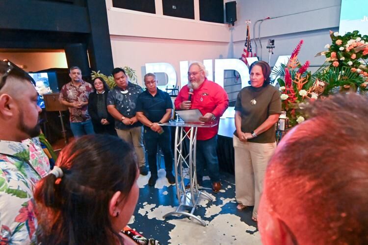 The Legislature, at the funeral of Sinajana Vice Mayor Rudy D. Iriarte on Wednesday, Jan. 17, 2024, in the central village, presents to his family a posthumous resolution recognizing his service.