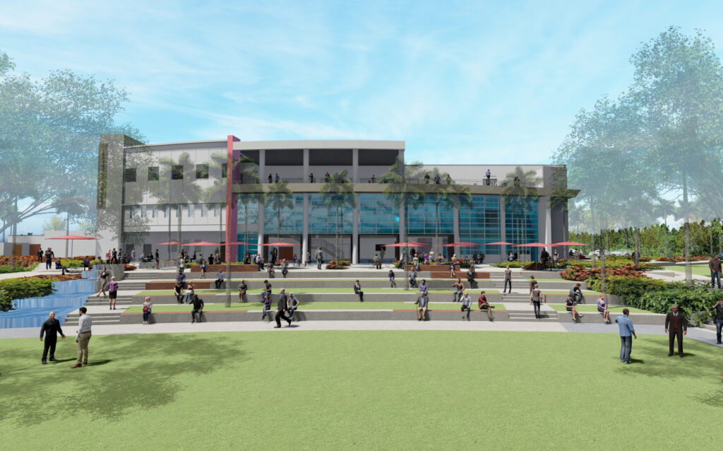Northern Marianas College will usher a new era on its new campus when it breaks ground today, Thursday, for its flagship building — the NMC Student Center. The image depicts the view of the center’s south facade. Located on Terlaje Hill, the three-story center will have 45,000 square feet of enclosed space to house a double-height, multi-purpose hall, a student services office, a dining area, a library, a bookstore, and other offices. The NMC Student Center is funded by the U.S. Department of Education and the Federal Emergency Management Agency. Supplemental funds were provided by the U.S. Office of Insular Affairs.
