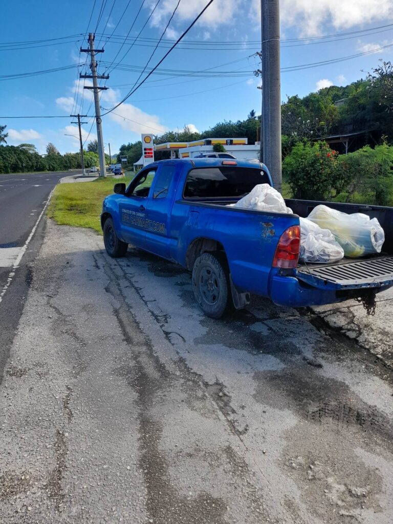 Max Aguon uses the pick-up truck donated by DPA Car Mart in San Antonio for his cleanup activities.