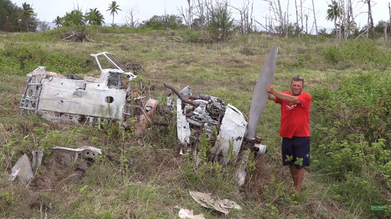 “Dear Meat for Dinner” YouTube host Rob Arrington includes a visit to a World War II crash site on the remote island of Pagan in a recent episode filmed in July 2020.