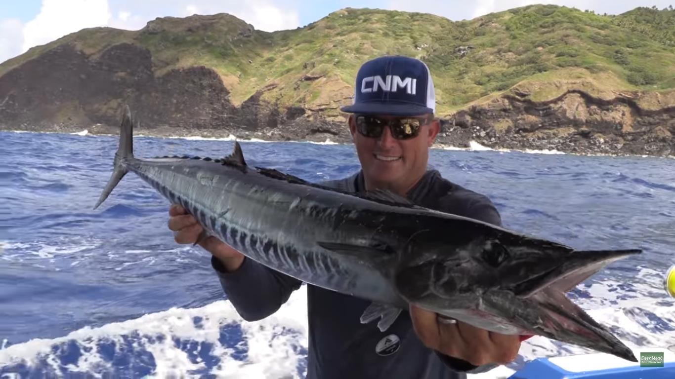 “Dear Meat for Dinner” YouTube host Rob Arrington shows off a wahoo caught off Maug in the Marianas in July 2020. The channel has filmed 15 videos in the Marianas over the last month, garnering over 6.7 million views. MVA photos