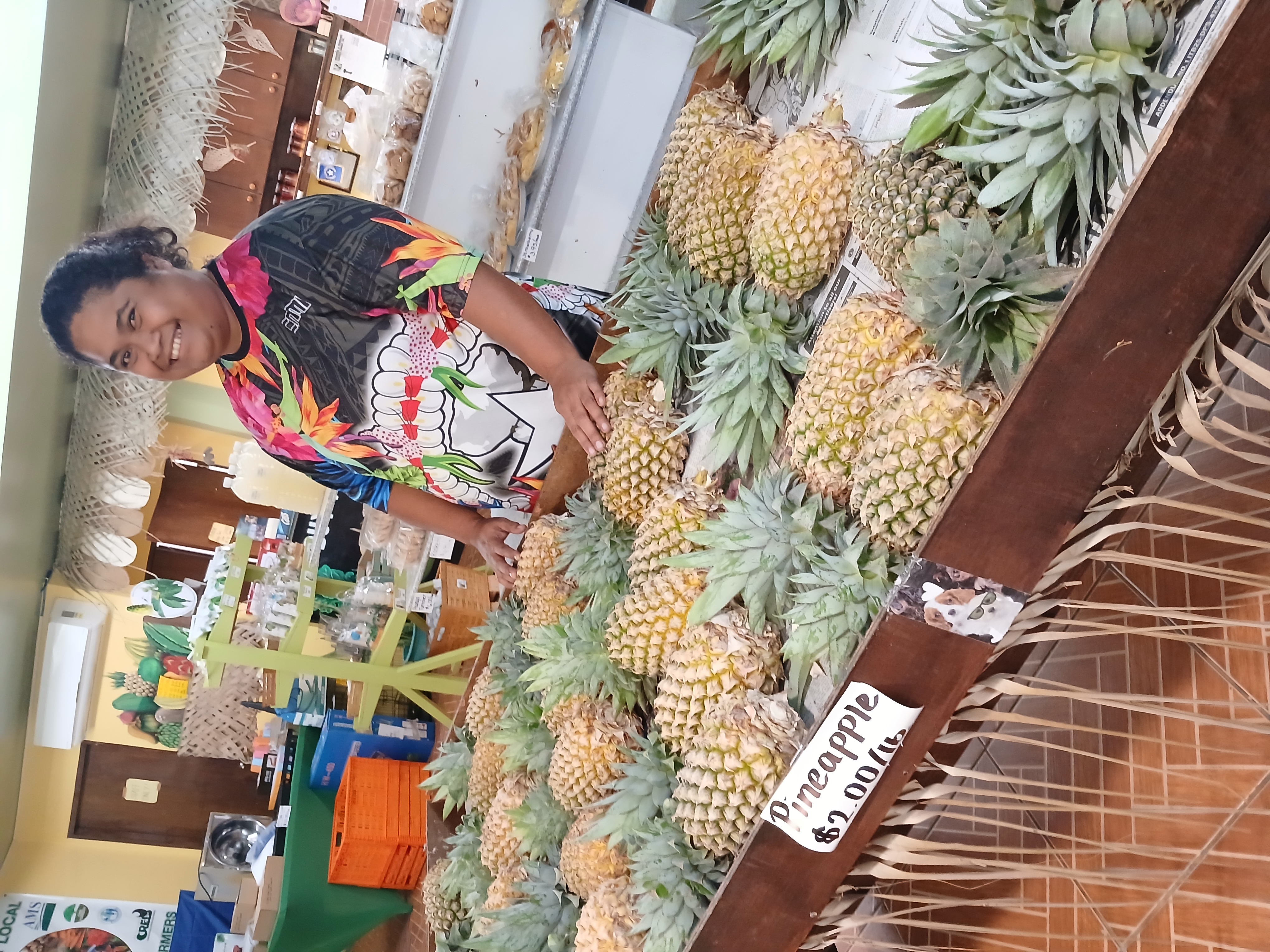 Sweet local pineapples are sold at the Public Coop Market in Garapan, where Karen Tagabuel displays them at $2 per pound. Tagabuel says the pineapples are sweet when they ripen: the outside skin turns yellow. Public Coop Market is on the ocean side of Beach Road across from Horiguchi Building in Garapan.
