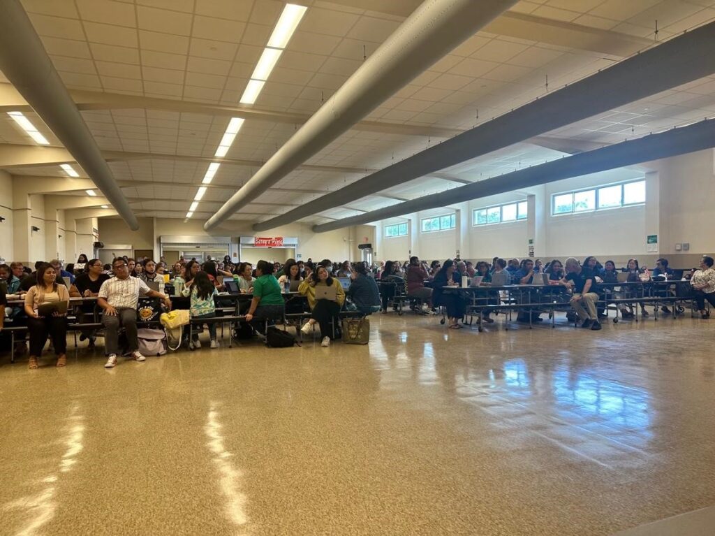 On Sept. 18, 2023, more than 300 educators from Saipan’s 7 elementary schools met at Koblerville Elementary School cafeteria for the Early Warning System in Reading platform training conducted by Jeaniffer Cubangbang, Statewide Longitudinal Data System Program technical manager.