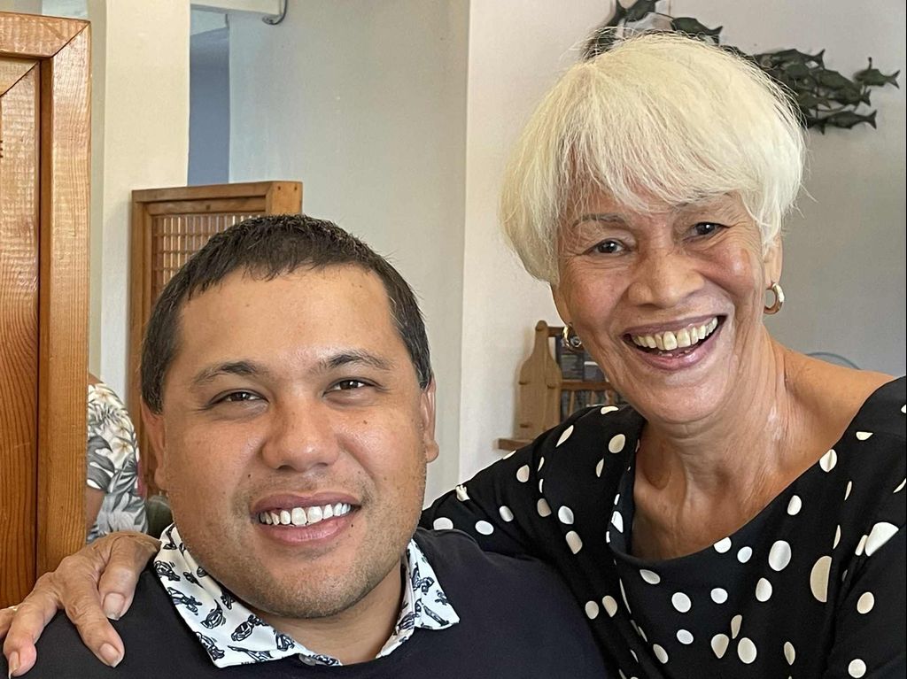 Chailang Palacios, right, with Father James Balajadia, pastor of Kristo Rai Church in Garapan. After the 9:30 a.m. Sunday Mass at Kristo Rai, Chailang met Father Balajadia at a restaurant.