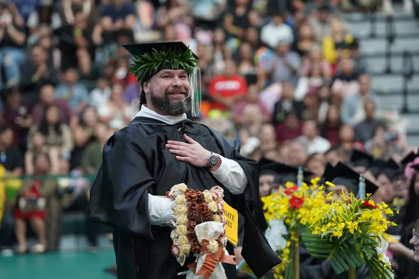 “This is your day — and don’t let anybody forget that,” Crisostomo told the graduates, acknowledging the effort required to reach commencement and the support systems that made it possible.
