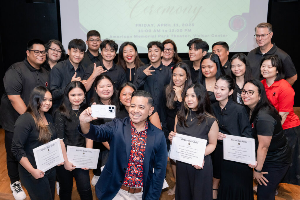Northern Marianas College School of Business students take a selfie with NMC Acting President Frankie Eliptico, center, and NMC Business Department faculty and staff after the students were inducted into the Sigma Beta Delta International Honor Society, which recognizes business majors who rank in the top 20% of their undergraduate, graduate, or doctoral classes. Sigma Beta Delta has established over 450 chapters across 48 states and internationally, inducting members worldwide to honor their exceptional academic achievements in business, management, and administration.