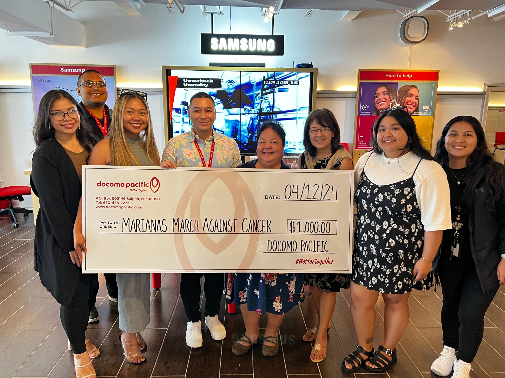 Docomo Pacific reaffirmed its commitment to community health and support by returning as a major sponsor for the 2024 Marianas March Against Cancer. Through their generous contribution of $1,000, Docomo Pacific demonstrates their ongoing commitment to improving the lives of those affected by cancer in the Marianas. Photo shows, from left, Jenypy Sambile, Brent Deleon Guerrero, Jocelyn F. Deleon Guerrero and Lynn Tenorio. For sponsorship opportunities contact mmac.sponsorship@gmail.com/.