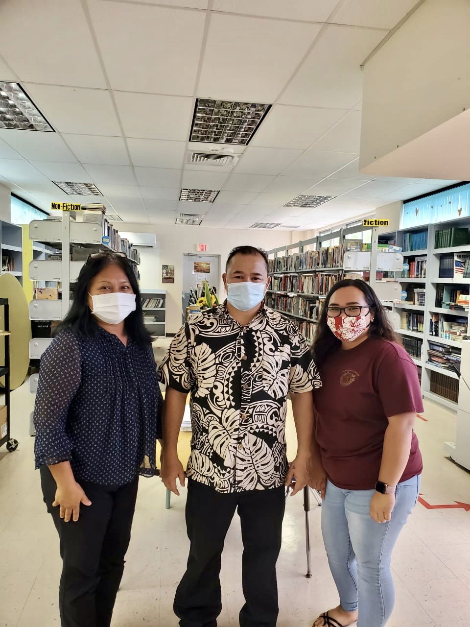Dr. Rita H. Inos Jr. Sr. High School Vice Principal Annette Calvo, left, Education Commissioner Dr. Alfred Ada, and an RHI staff member.