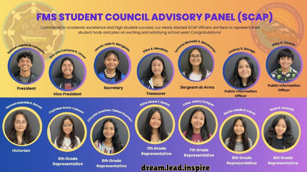 (PSS) — Francisco M. Sablan Middle School installed its Student Council Advisory Panel on Jan. 27, emphasizing the critical role that student leaders play in creating a supportive learning environment.