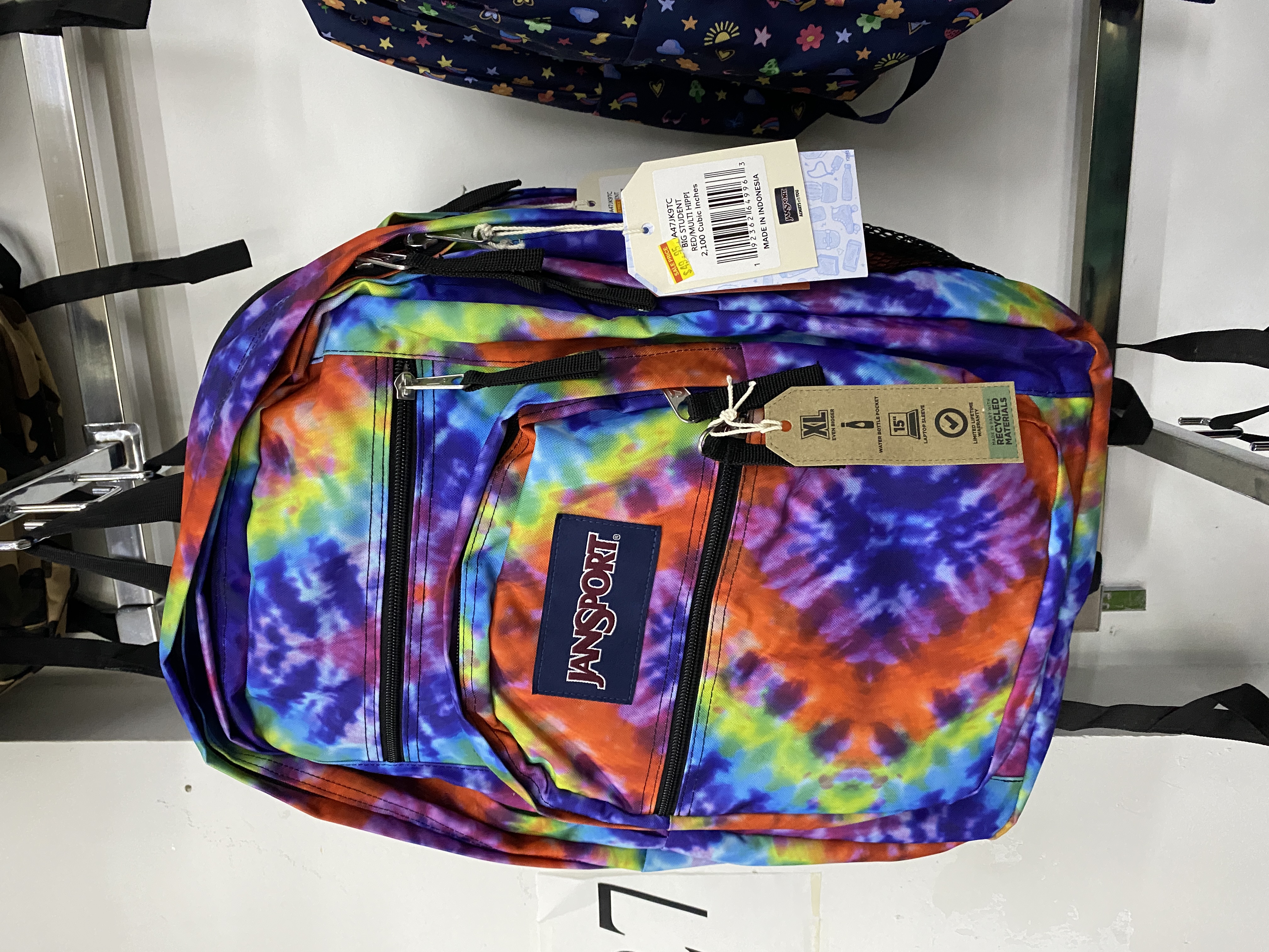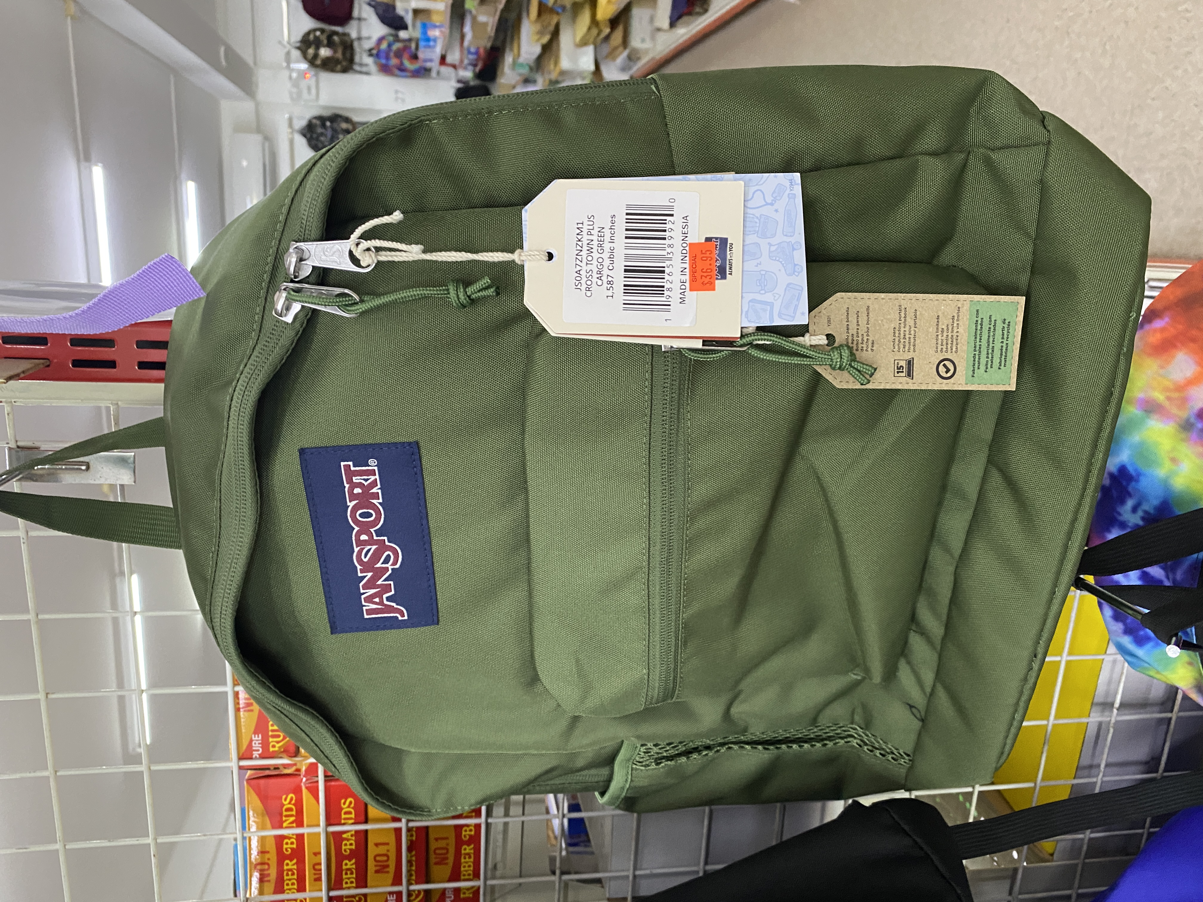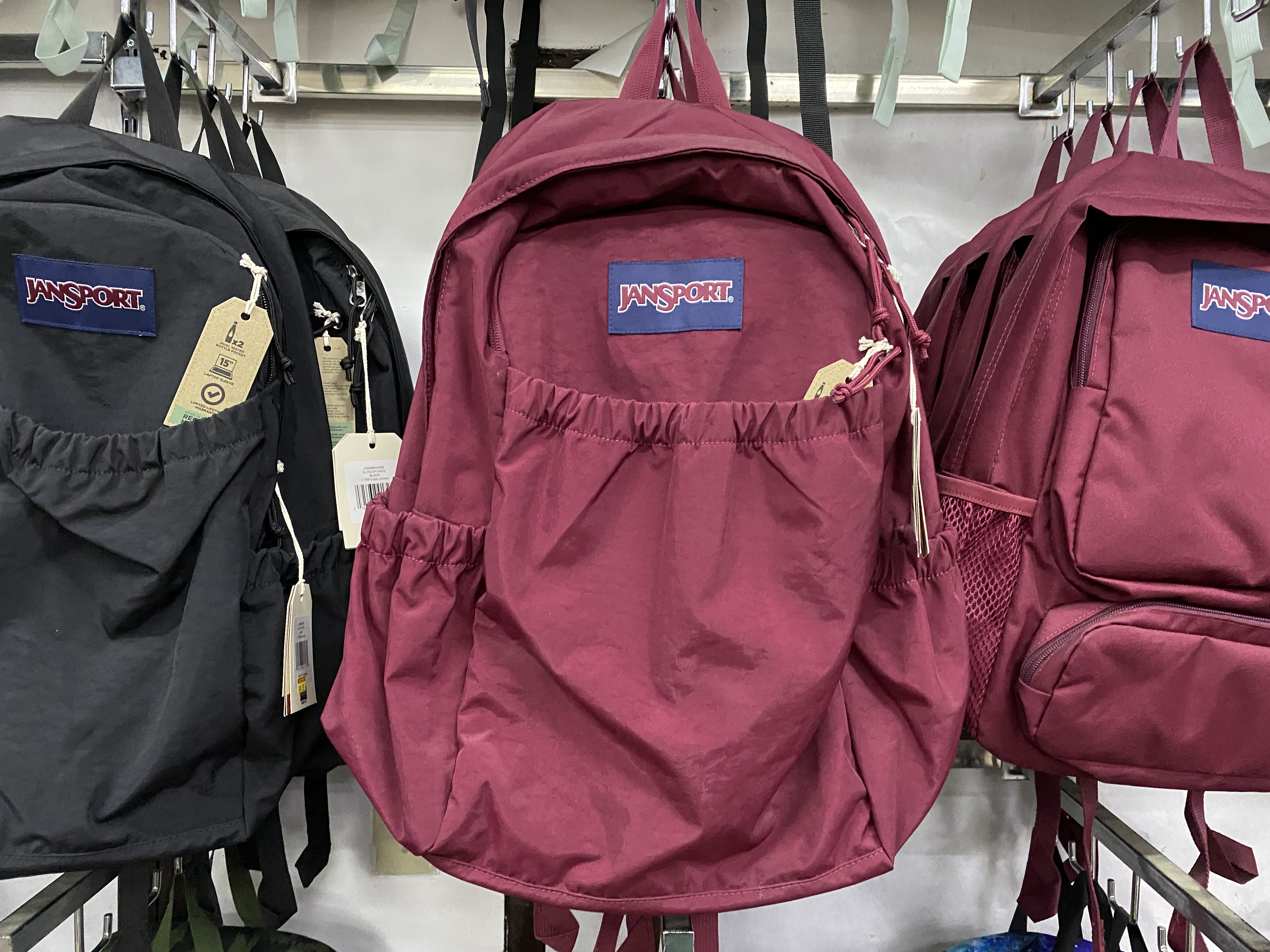 A little further down Beach Road, Modern Stationery has a different selection of Jansport backpacks in various sizes. Different price points we saw included a cargo green backpack for $36.95, sling bags for $31.95, a tie-die $49.95 backpack, a “slouch pack” in russet red for $44.95, and much more.