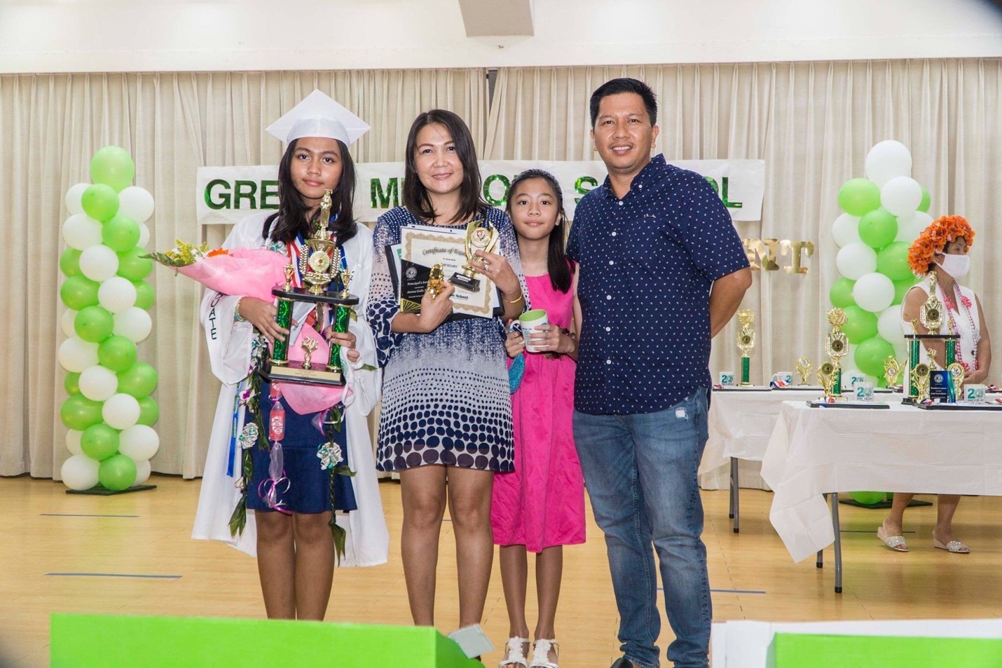 Salutatorian and Best in Arithmetic, Paula Angela E. Bernardo, poses with her family. GMS photos